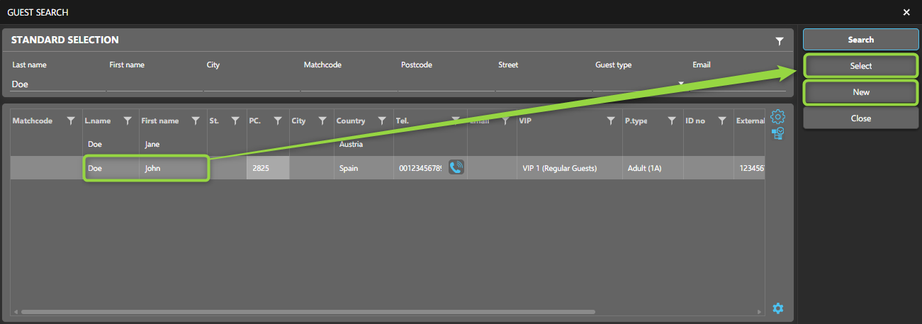- Or click Guest search from the function pane.