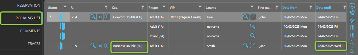 Below is an example showing the differences between reservation data and its rooming list: