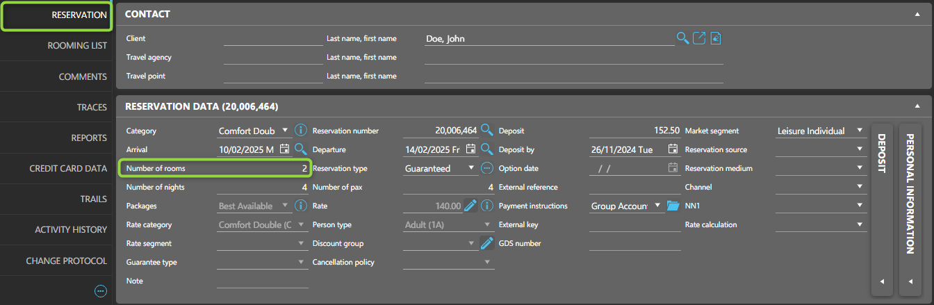 The data within the RESERVATION element reflects the information shown on the main reservation page in SIHOT, offering general details about the overall reservation. However, this data can be overwritten for specific rooms or individual entries within the reservation.