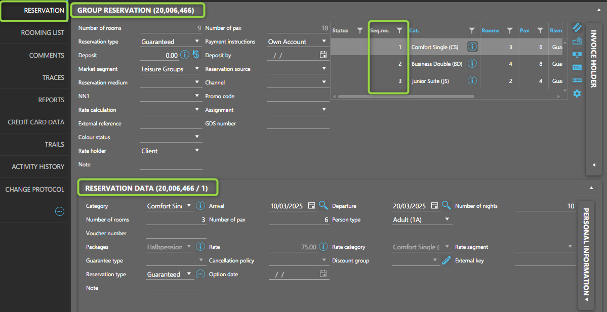 | RESERVATION-OBJID | Unique reservation identifier | The same resno can have different OBJIDs - in case of group reservations or after a room move | |